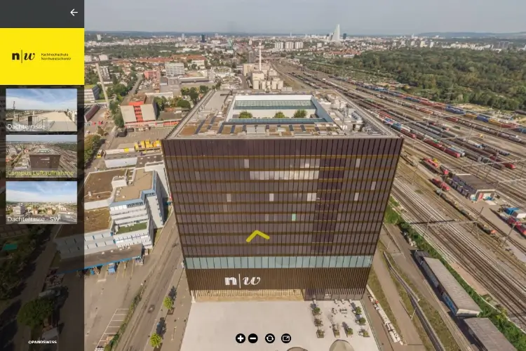 Nachdem die FHNW Nordwestschweiz in Muttenz ihr neues Gebäude bezogen hat, will man dieses Interessenten und Publikum näher bringen. Für den Tag der offenen Tür wurde eine Audiotour erstellt, welche auch im virtuell zum Zuge kommt. Lassen Sie sich durch das Gebäude führen und geniessen Sie diese unterhaltsame Tour.